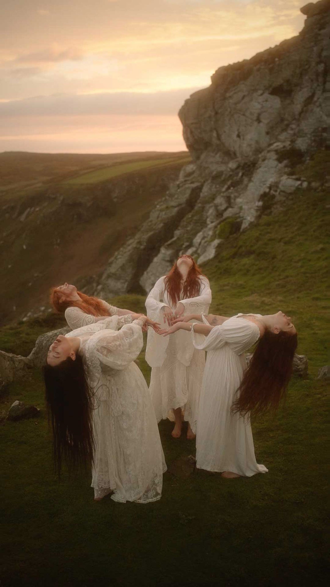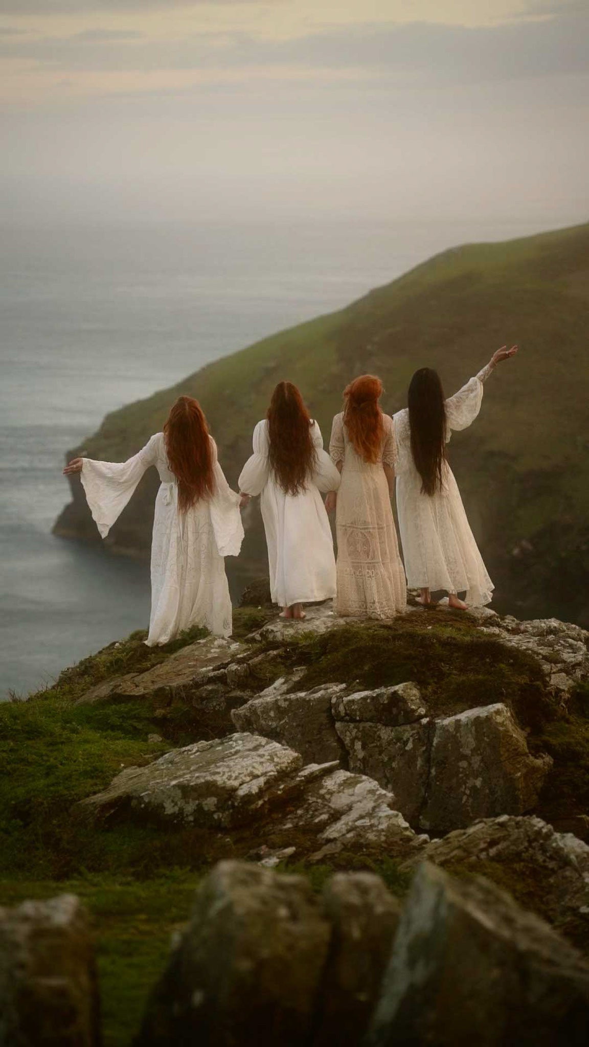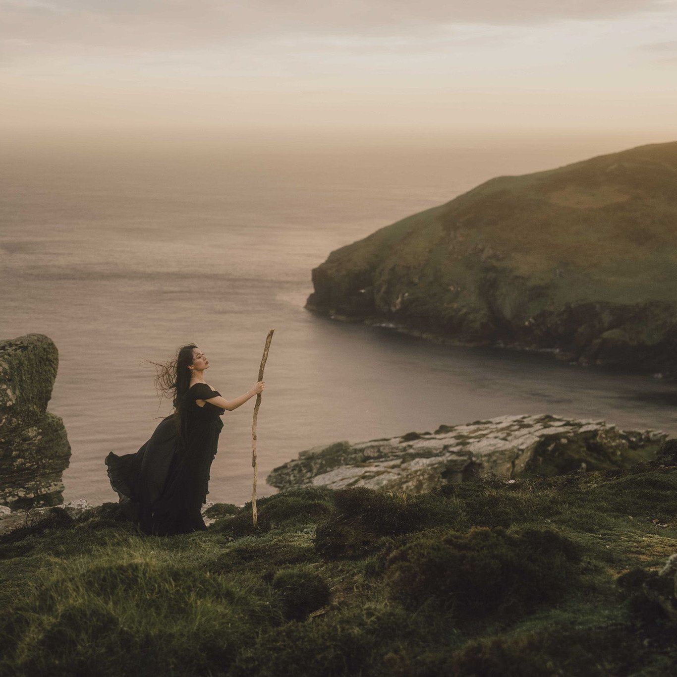 We had an unforgettable time on location with Wendy, Karl, and Ailen this past May. The weather added its own magic—wild winds, swirling mists, and a stunning sunset right on cue, all at the most sacred of locations: a stone circle perched high on cliffs above crashing waves. We made unforgettable memories and loved every bit of Wendy and Ailen’s creative energy. Our settings ranged from our dramatic coastline and bluebell-filled woods to a hauntingly beautiful ruined abbey. A huge thank you to Wendy and Karl (A Quiet Wild) who captured the spirit of Sacred Clan perfectly in these incredible photographs. Thank you Wendy, Karl, and Ailen for making this experience unforgettable!