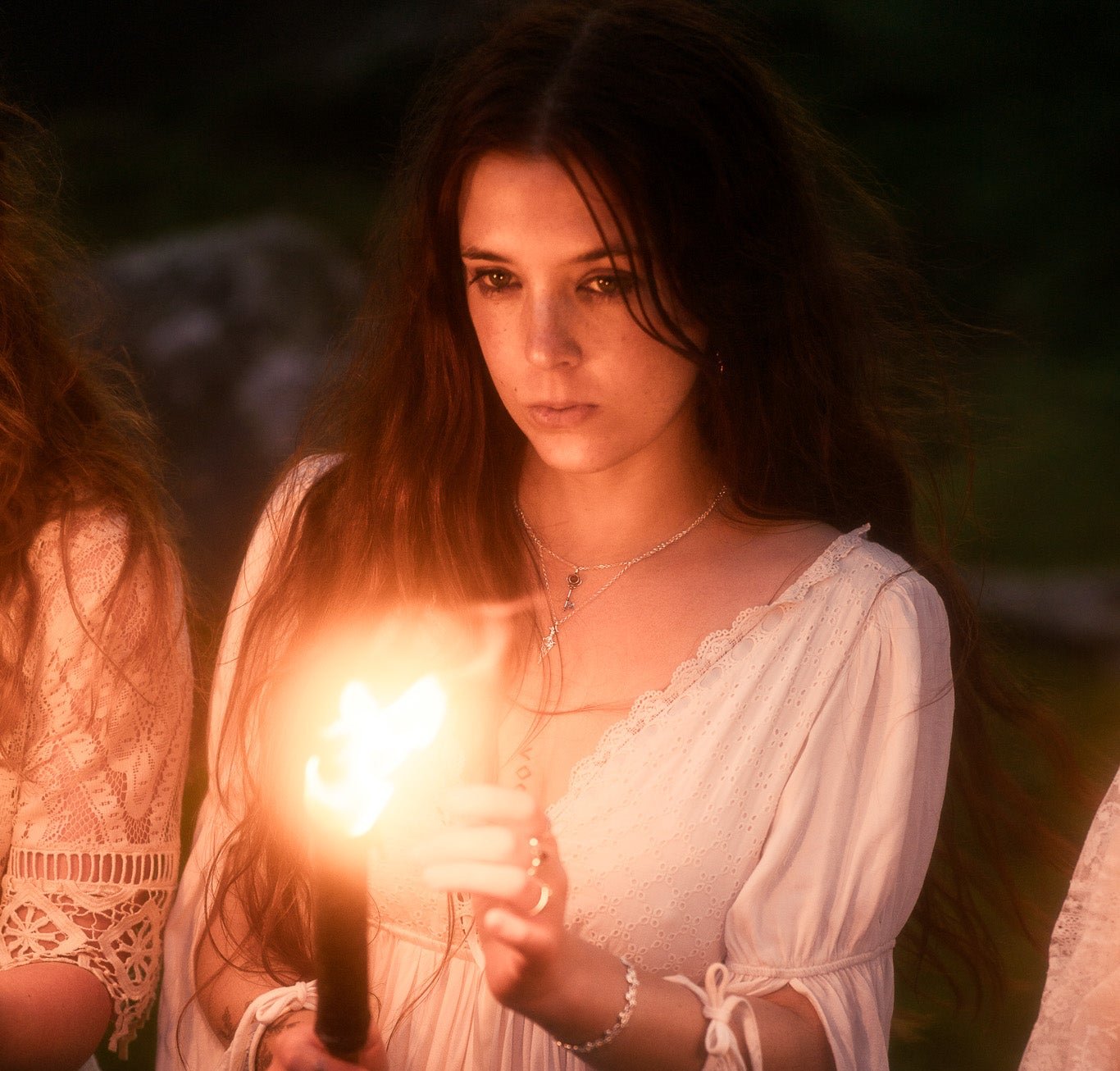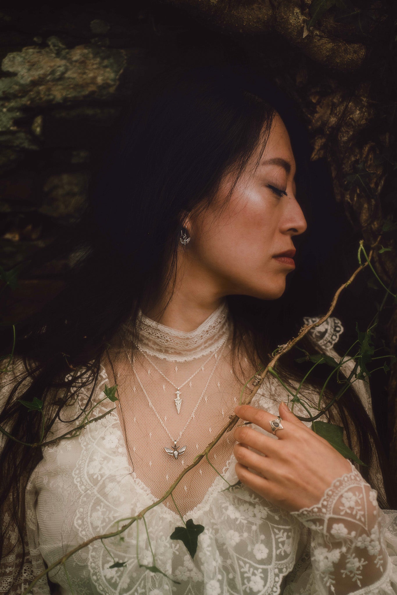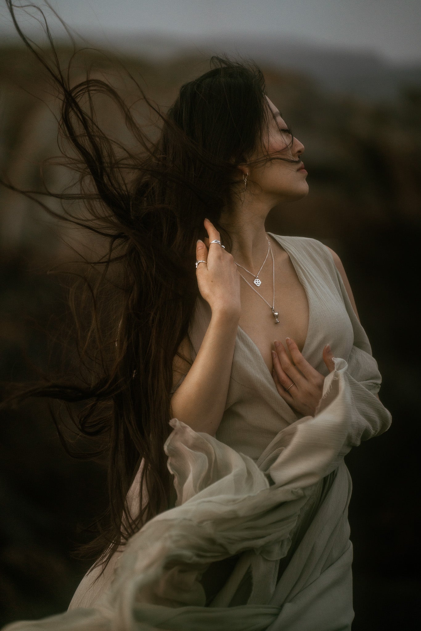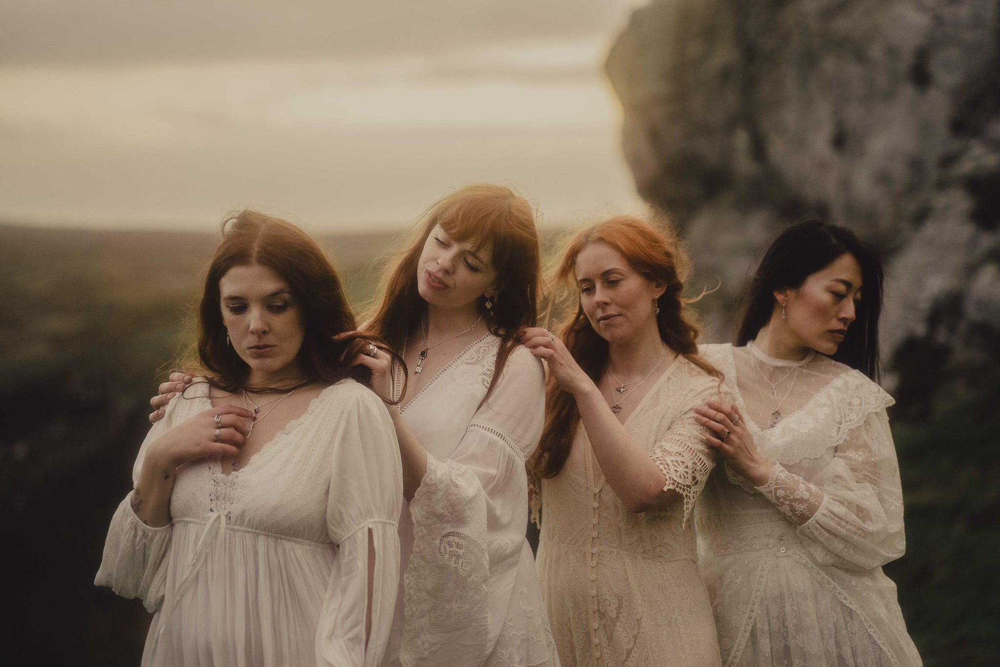 We had an unforgettable time on location with Wendy, Karl, and Ailen this past May. The weather added its own magic—wild winds, swirling mists, and a stunning sunset right on cue, all at the most sacred of locations: a stone circle perched high on cliffs above crashing waves. We made unforgettable memories and loved every bit of Wendy and Ailen’s creative energy. Our settings ranged from our dramatic coastline and bluebell-filled woods to a hauntingly beautiful ruined abbey. A huge thank you to Wendy and Karl (A Quiet Wild) who captured the spirit of Sacred Clan perfectly in these incredible photographs. Thank you Wendy, Karl, and Ailen for making this experience unforgettable!