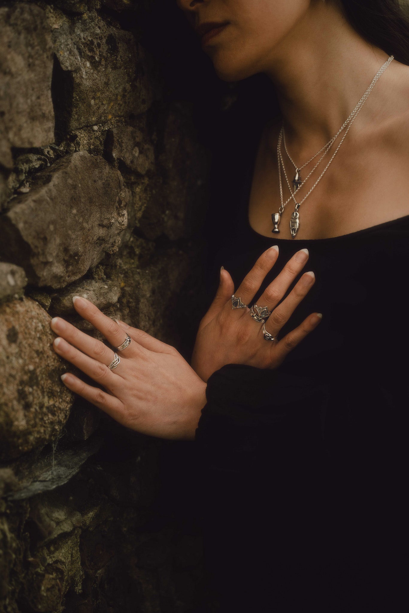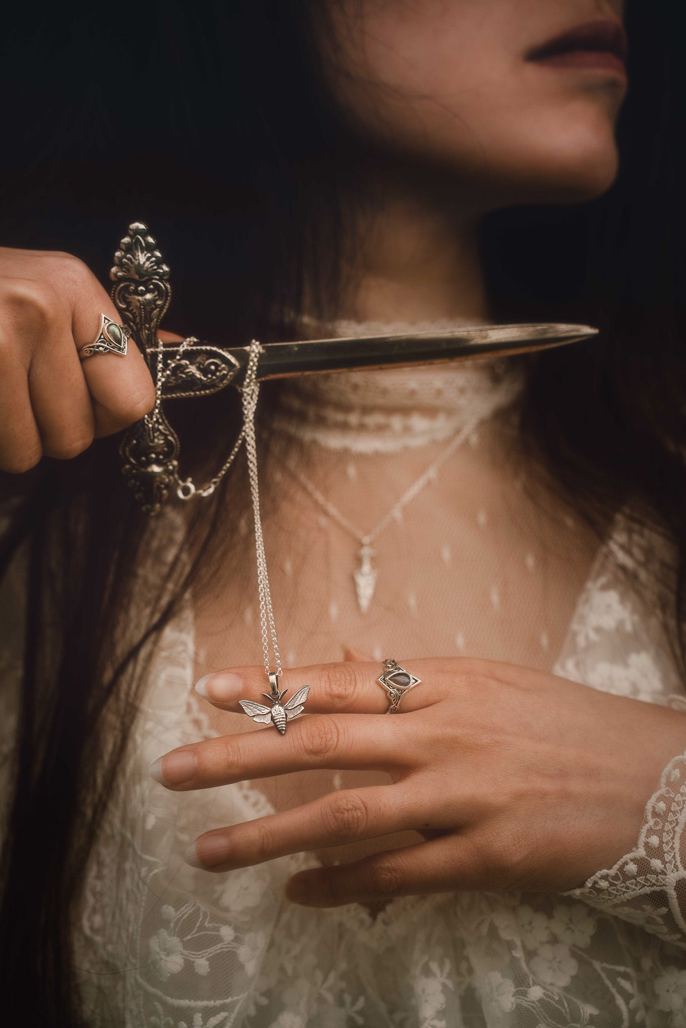 The Morrigans Tear Gothic Ring - with Labradorite or Garnet