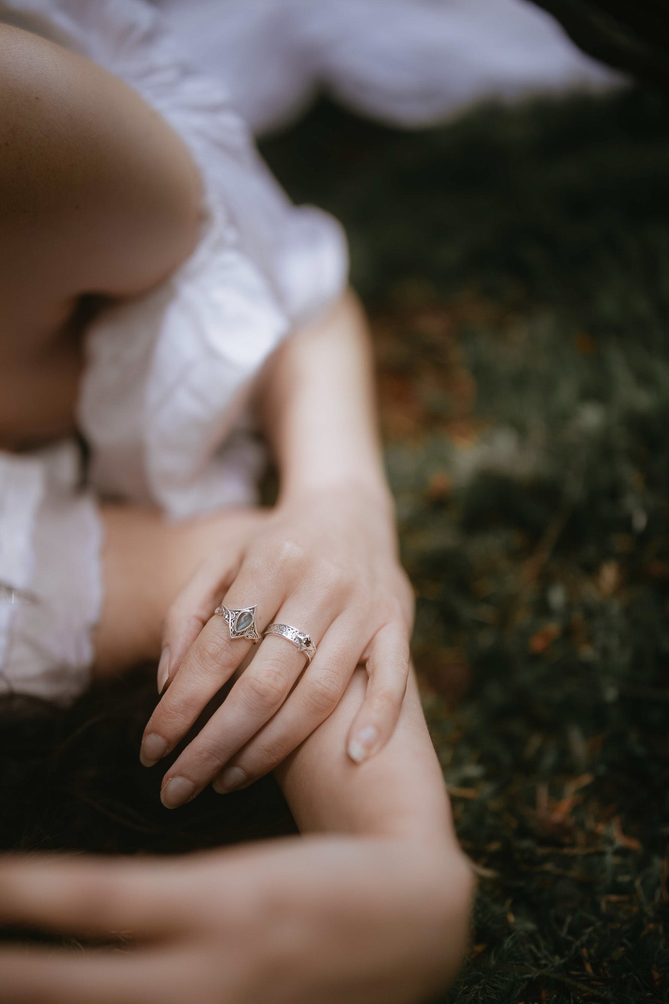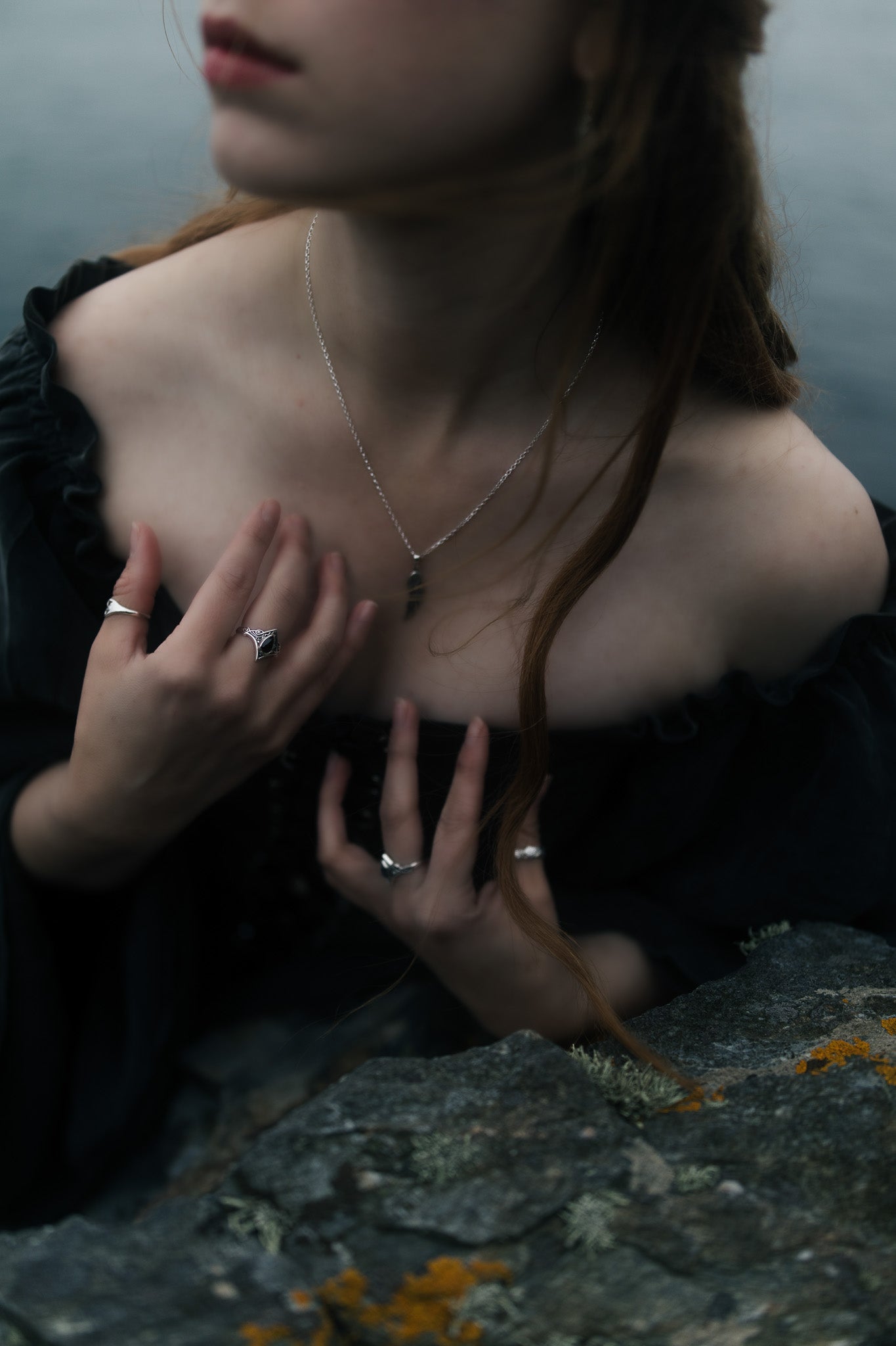 The Morrigans Tear Gothic Ring - with Labradorite or Garnet