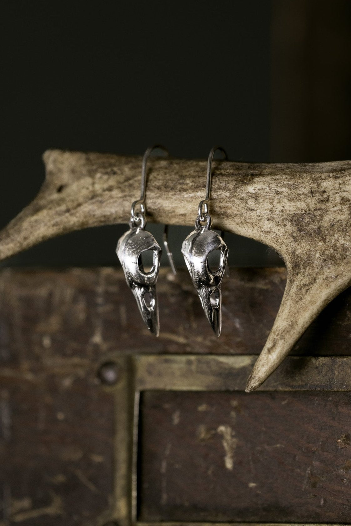 - The raven skulls measure approx. 18mm x 8mm, with an overall drop including earwires of 30mm.