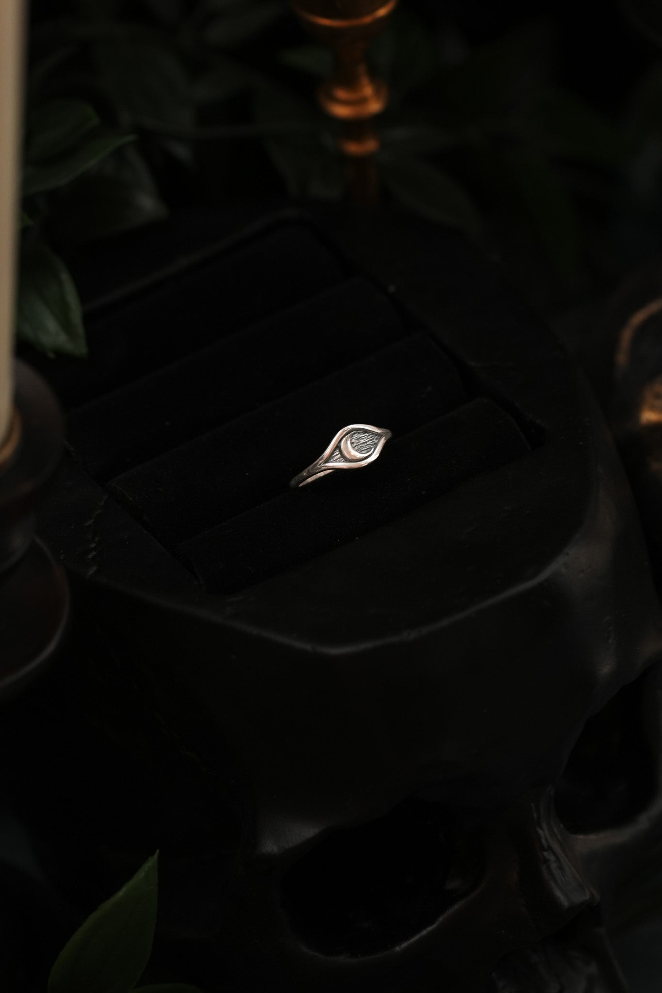 Handcrafted in sterling silver, the Selene Ring carries a quiet magic, a companion for those drawn to the night, to intuition, and to the power of beginnings that emerge from darkness.